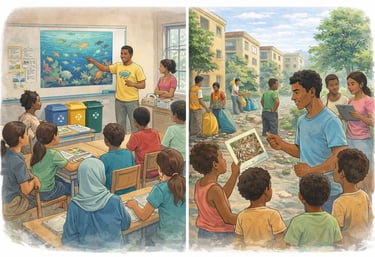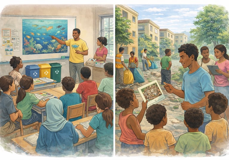 LagonEwa mobilise les élèves et les partenaires pour des actions concrètes : prévention, ramassage, tri, sensibilisation et valorisation des initiatives locales.